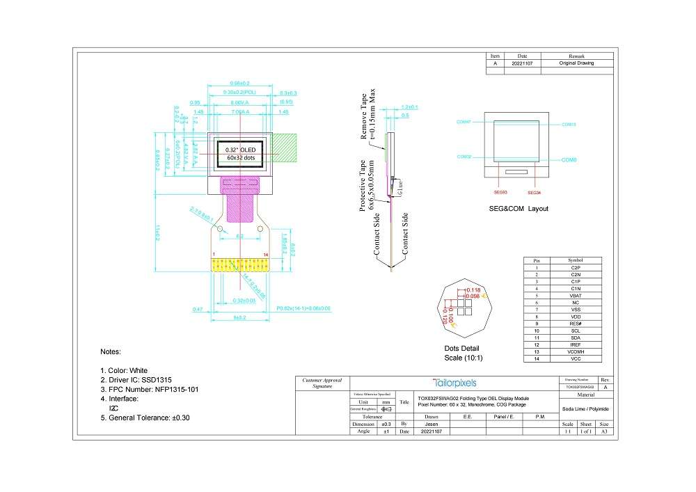 TOX032FSWAG02 | 0.32-inch OLED | 60×32 Dots | Monochrome White | I2C Interface | SSD1315 |